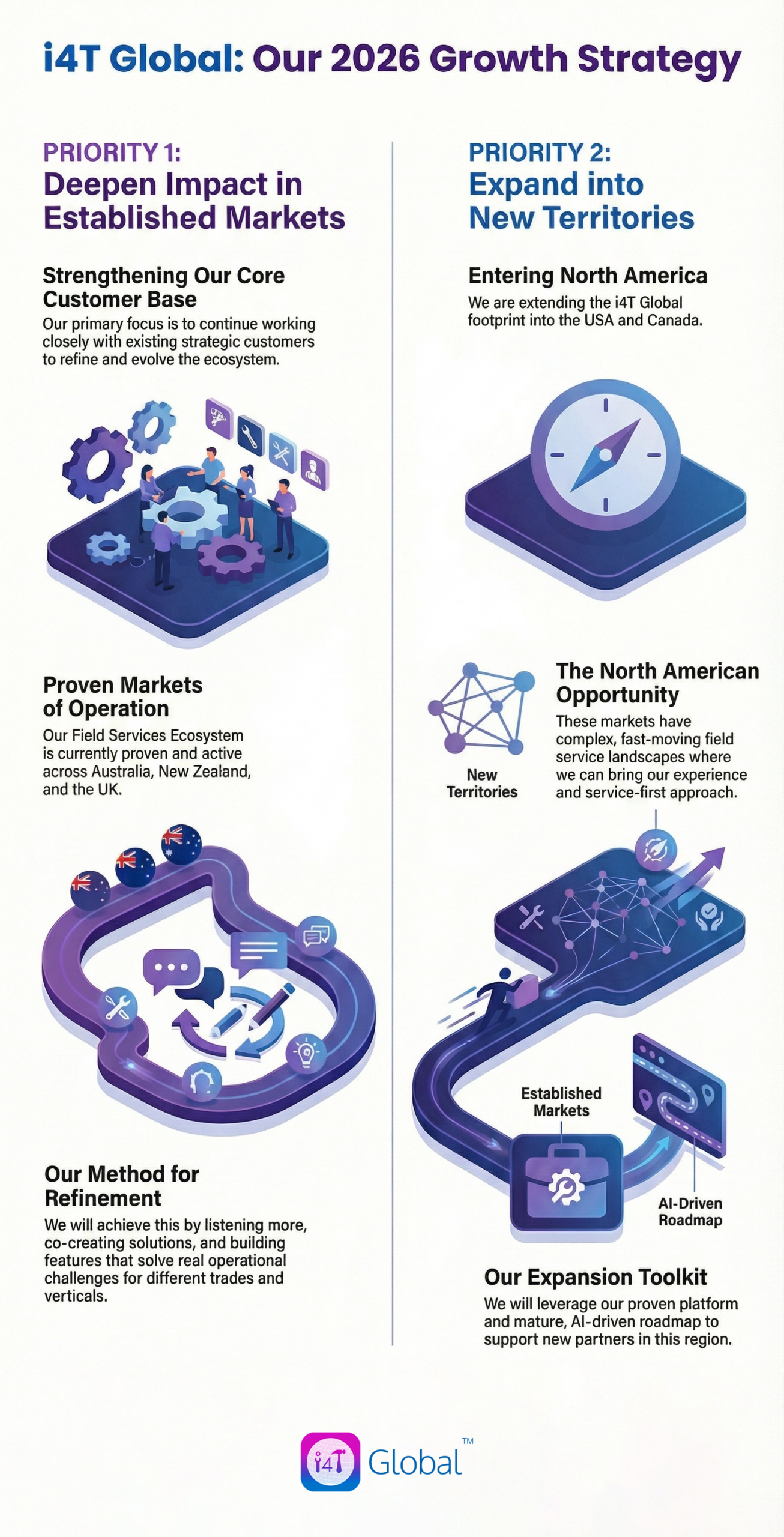 Leveraging our proven platform and AI-driven roadmap, we’ll be extending the i4T Global footprint into North America. These are markets with complex, fast-moving field service landscapes – and we’re excited to bring our ecosystem, our experience and our service-first approach to new partners there.
